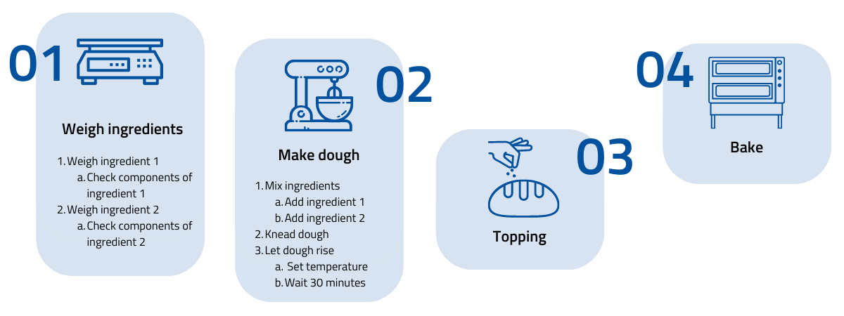 - Subrecipes, process steps, and bill of materials: Structured breakdown of recipes into subrecipes and process steps with detailed bill of materials for all components used.