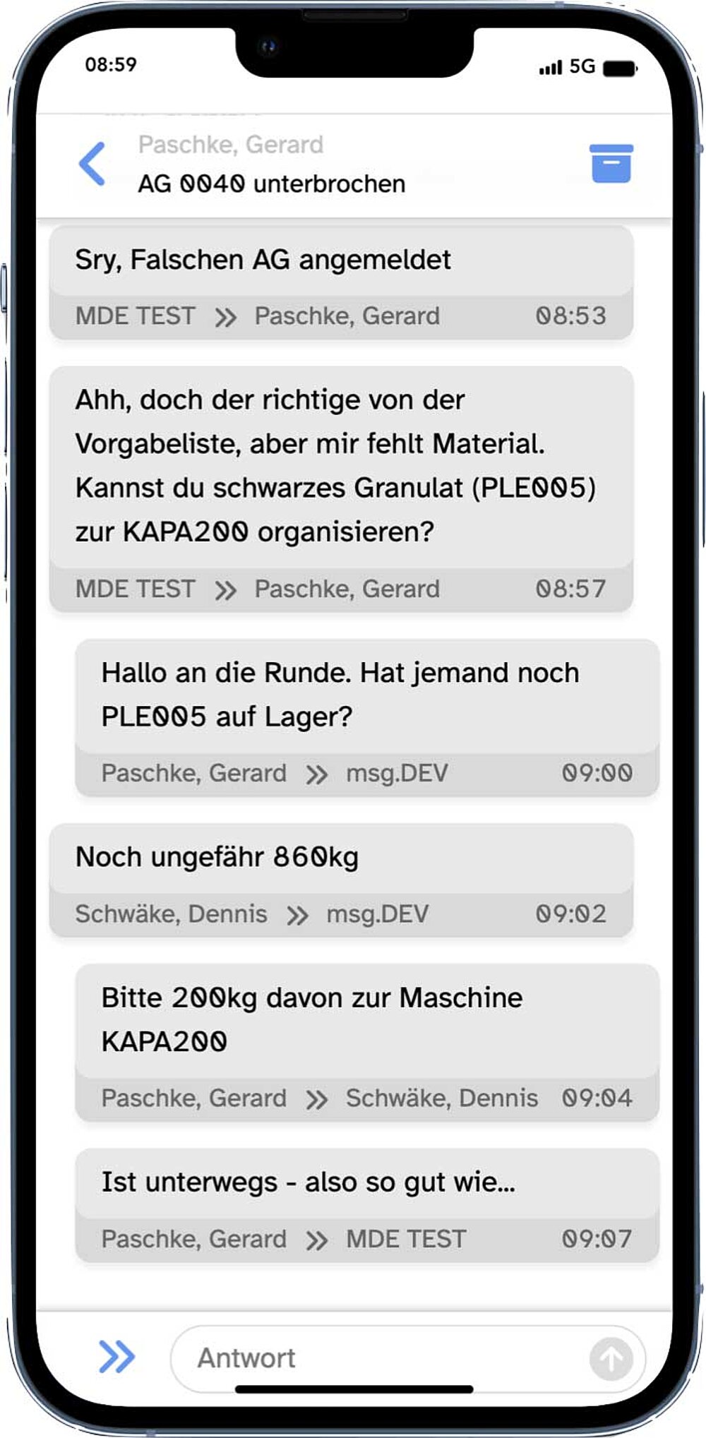 With the ChatFloor mApp, shopfloor messages are sent directly to smartphones - without any installation or download from the AppStore.