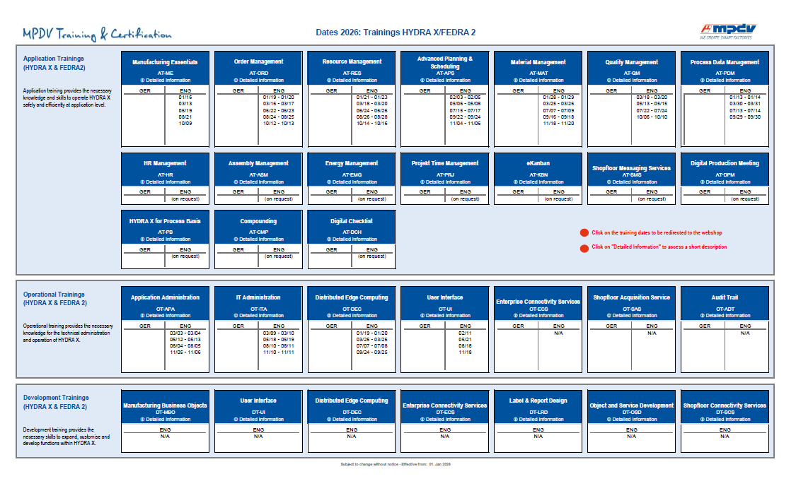 Whether MES HYDRA, APS FEDRA or the Manufacturing Integration Platform: our comprehensive training program is specially designed to give you and your team the skills and knowledge you need to make the most of our software products.